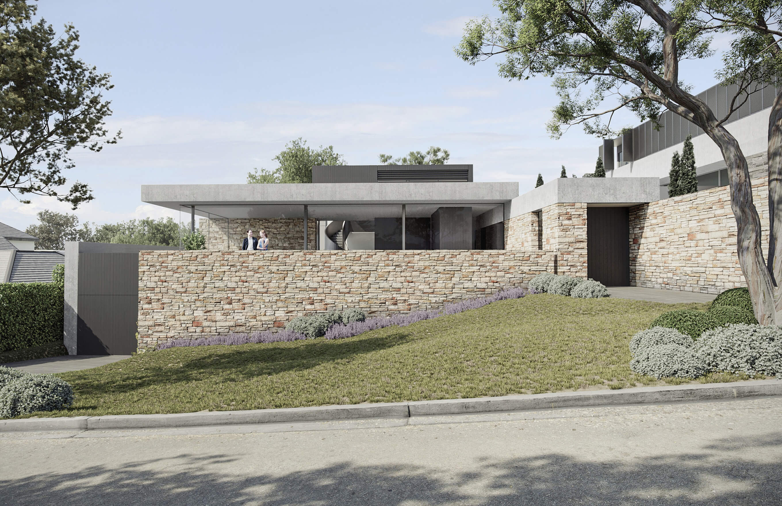 This house is the second house we have designed for this large site in Sorrento. This house has been designed as a counterpoint to the first house which explores the tectonics of cantilevered forms. This house, in contrast, explores the classical trope of a trabeated piano nobile positioned over a rustic sub-floor. The lightness and delicacy of this house sits in balance to the elemental language of cast forms expressed in the first house.